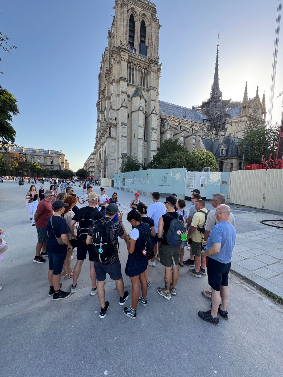 The guided tour takes place on the square in front of Notre-Dame and does not include entry to the interior of the cathedral.